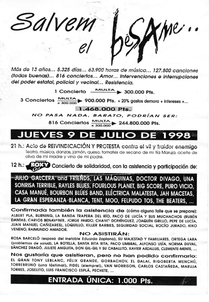 Octavilla cargada de ironía del desaparecido Miguel Haba harto de las multas al Bésame Mucho. 1998. Cuando la vi me reí mucho, me parece genial. Octavilla cargada de ironía del desaparecido Miguel Haba harto de las multas al Bésame Mucho. 1998. Cuando la vi me reí mucho, me parece genial.
